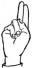 На ћирилици написано ВУКОСАВ СЛЕПЧЕВИЋ састоји се из 16 слова [?]. Исписано ћириличном једноручном азбуком за глувонеме: